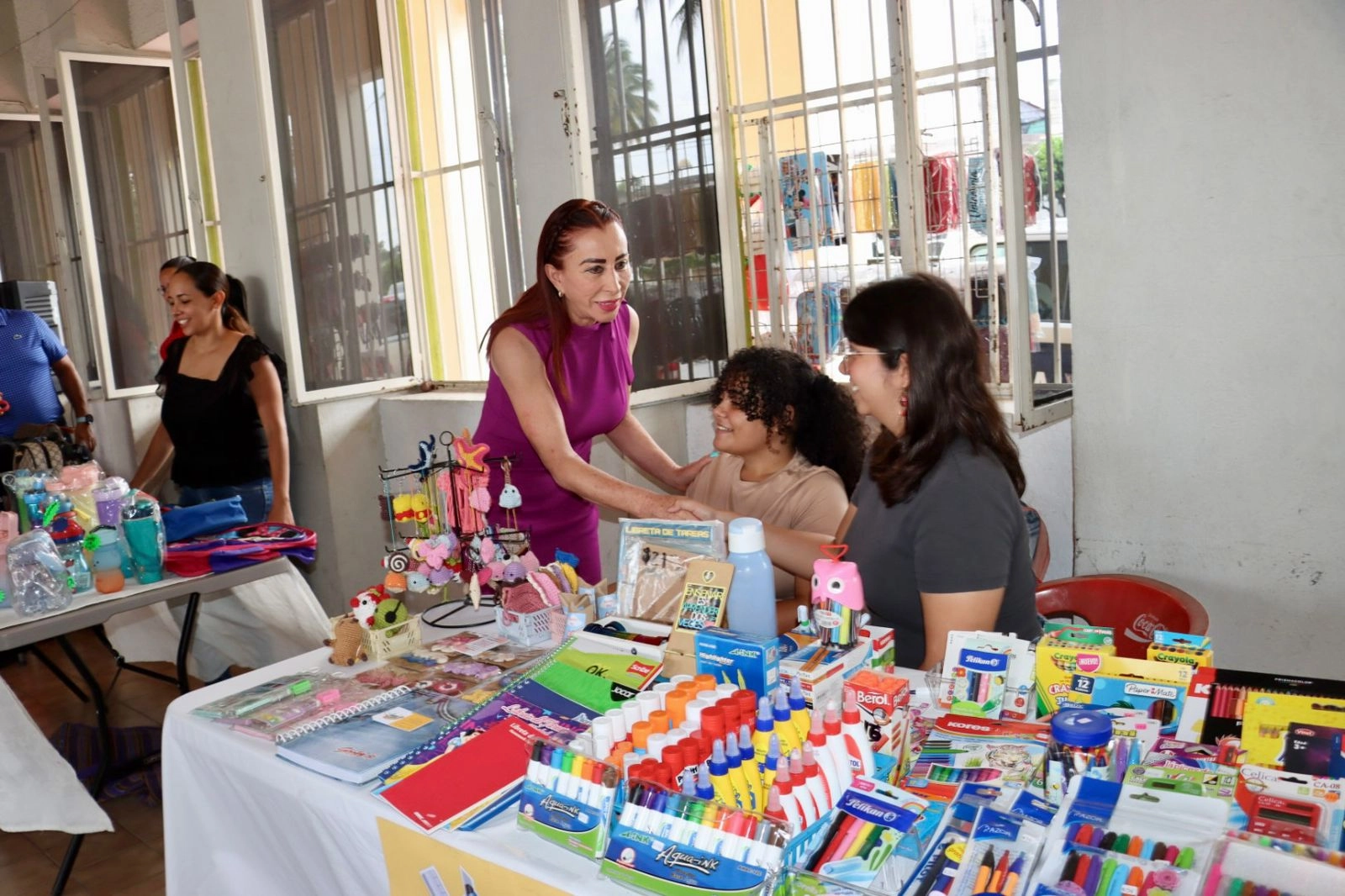 Villa de Álvarez, Col.- En apoyo a la economía de las familias villalvarenses, la Presidenta Tey Gutiérrez Andrade inauguró la gran Expo Venta de Regreso a Clases Villa de Álvarez 2025.