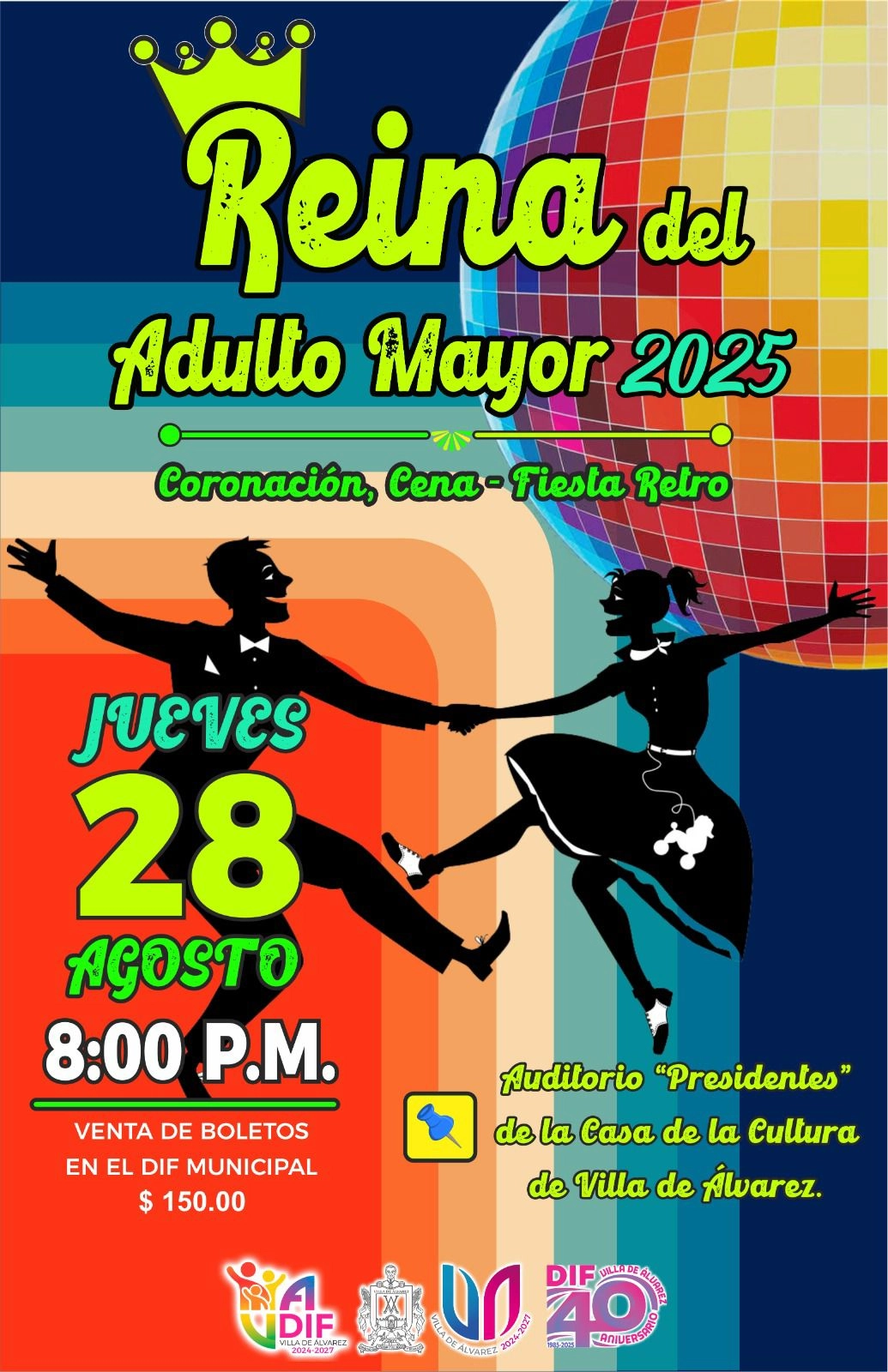 El jueves 28 de agosto se realizará la misa de Acción de Gracias en la Parroquia de San Francisco de Asís. Cerrando las actividades ese mismo día con la Coronación de la Reina del Adulto Mayor de Villa de Álvarez 2025 que se llevará a cabo en el Salón Presidentes de la Casa de la Cultura.