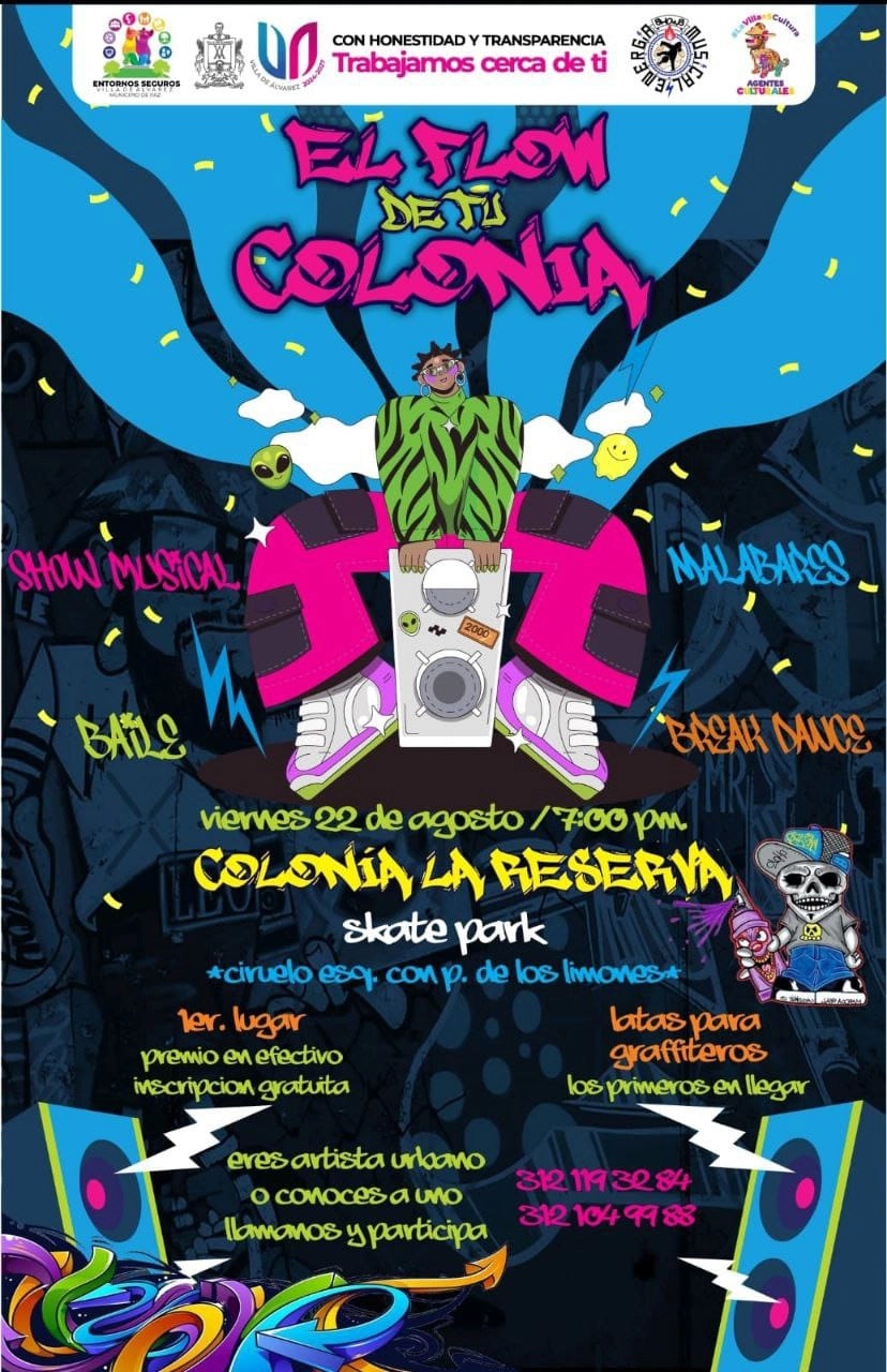 Villa de Álvarez, Col.- El Ayuntamiento de Villa de Álvarez, a través de la Dirección de Educación y Cultura, invita a participar en el concurso “El Flow de tu Colonia”, que se realizará este viernes 22 de agosto .