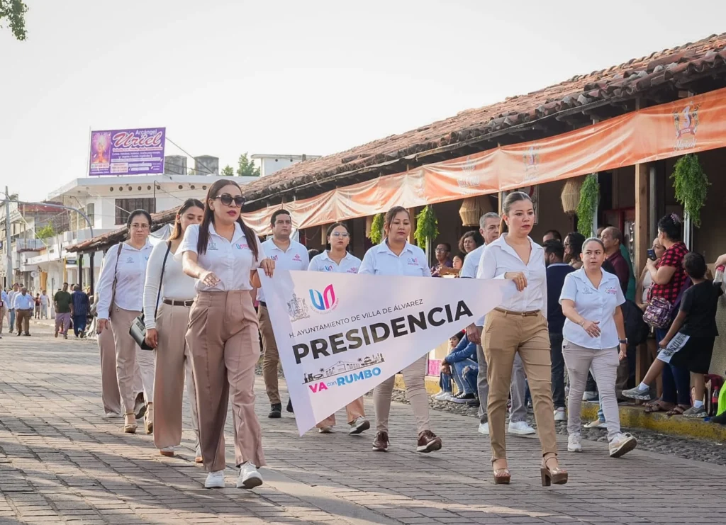En la marcha participaron la Escolta y Banda de Guerra de la Dirección General de Seguridad Pública de Villa de Álvarez, autoridades del municipio y de la Secretaría de Educación y Cultura, supervisores de educación básica y funcionarios del Ayuntamiento.