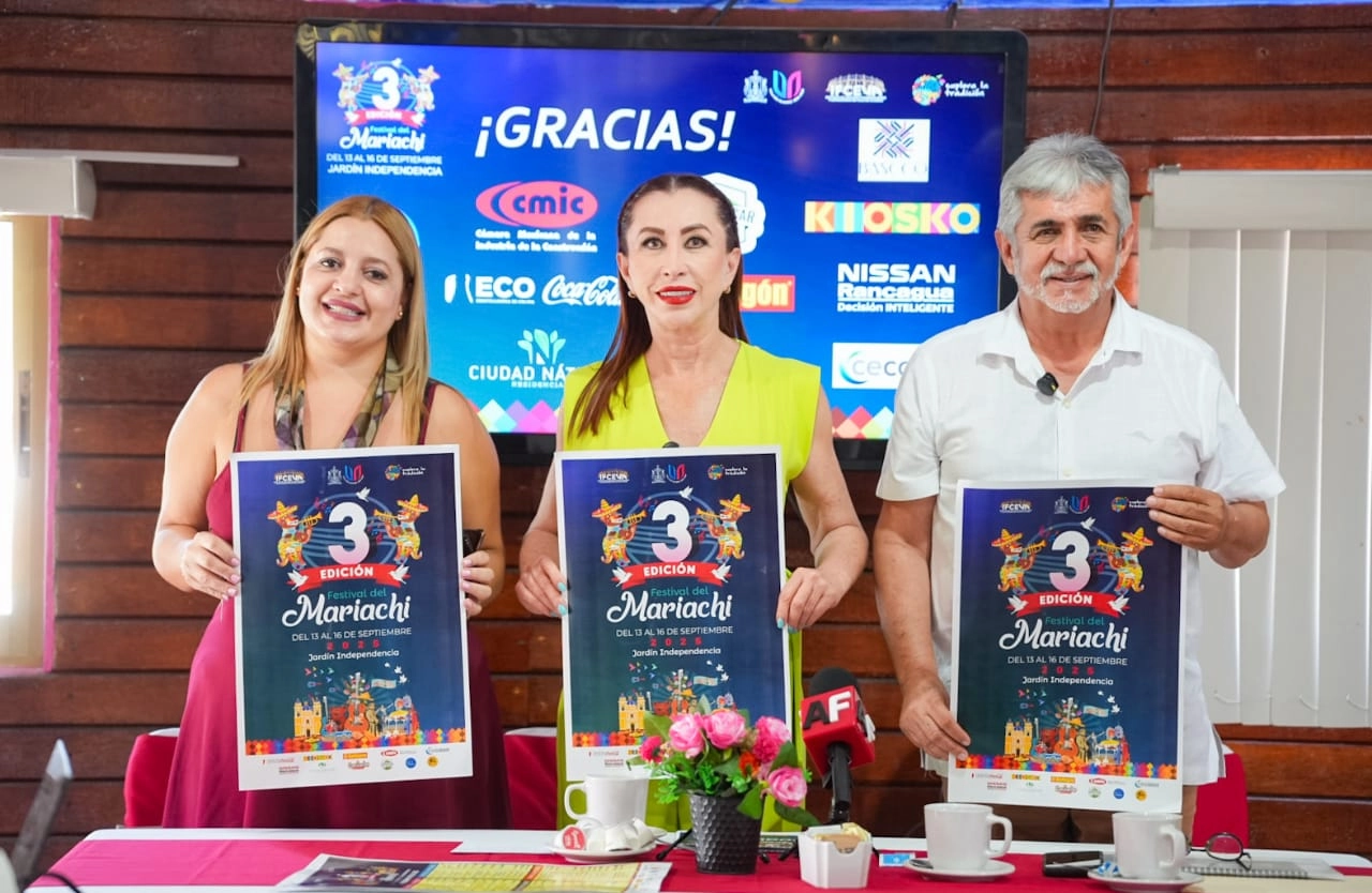 Acompañada por Mayra Hirales de la Asociación de Hoteles y Moteles del Estado de Colima, y Petronilo Vázquez, Director del Instituto de Festejos Charrotaurinos y Exposiciones de Villa de Álvarez, la Alcaldesa reconoció que el Tercer Festival del Mariachi es posible gracias a los patrocinadores de la iniciativa privada, quienes están financiando gran parte del Festival.