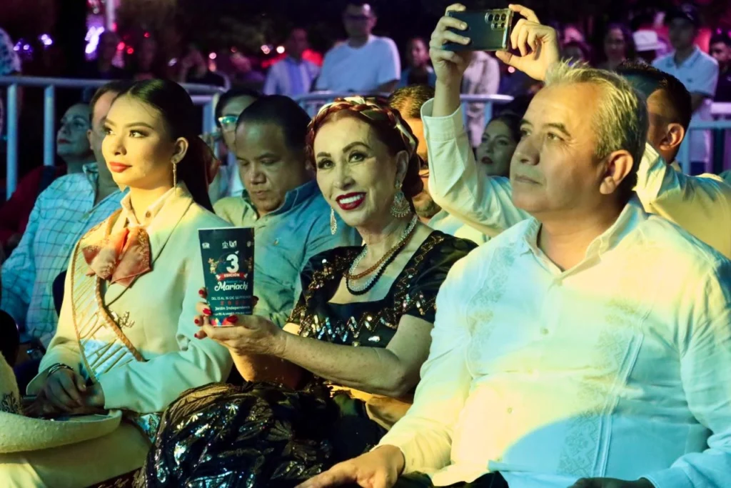 La Alcaldesa, acompañada por Francisco Rodríguez García, Secretario de Desarrollo Económico del Gobierno del Estado y representante de la Gobernadora Indira Vizcaíno, expresó su agradecimiento al sector empresarial, que dijeron sí al patrocinio del Tercer Festival del Mariachi, “que spin ustedes no hubiera sido posible esta tercer edición”.