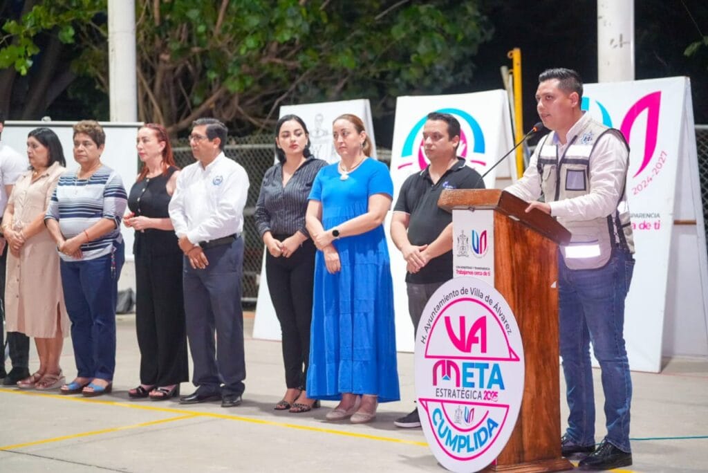 Villa de Álvarez, Col.- Con la plática “Mitos y realidades en el tema de las adicciones” en la Escuela Secundaria Benjamín Fuentes González Turno Vespertino, el Ayuntamiento de Villa de Álvarez cumplió la Meta Estratégica de impartir en este año 35 charlas de prevención sobre el uso indebido de drogas y alcohol y sobre ciberseguridad.
