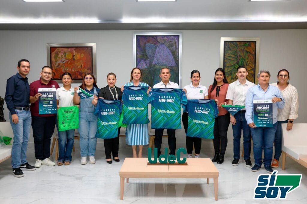 El anuncio se realizó este jueves durante un encuentro en la sala de protocolo de la Rectoría, donde el rector, Dr. Christian Jorge Torres Ortiz Zermeño, acompañado por la presidenta del Voluntariado Universitario, Blanca Liliana Díaz Vázquez, recibió a Carolina Venegas Ochoa, presidenta de la FEUC, junto con su equipo de trabajo, quienes le entregaron el kit oficial de la carrera.