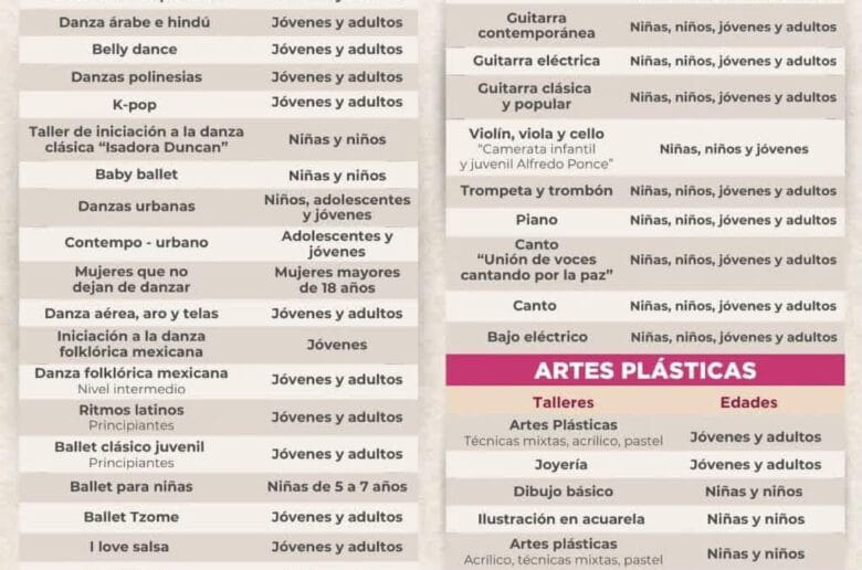 Este ciclo está dirigido a niñas, niños, jóvenes y personas adultas, quienes podrán descubrir y fortalecer su talento a través de disciplinas como artes escénicas, música y artes plásticas, en un entorno formativo que impulsa la expresión artística y el crecimiento personal.