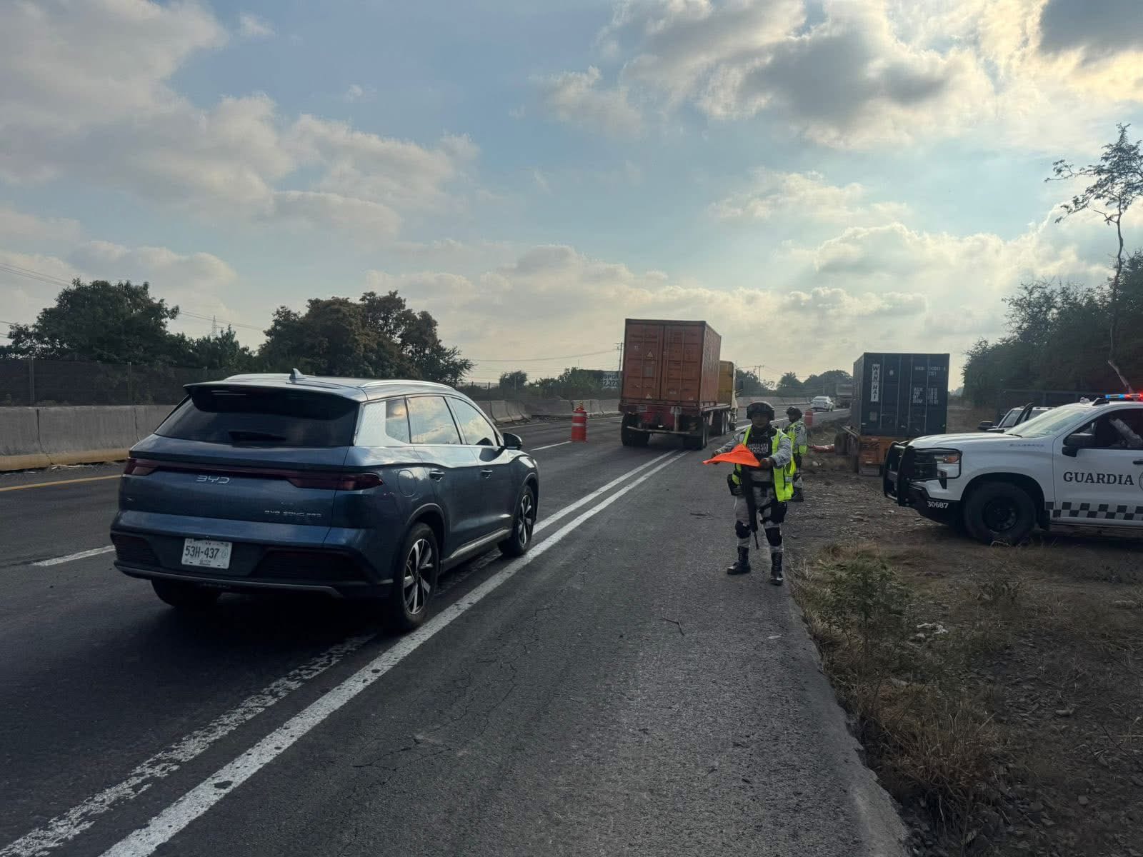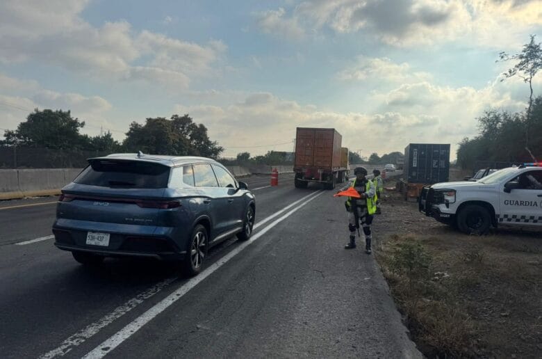 Circulación lenta, grúa continúa con maniobras.