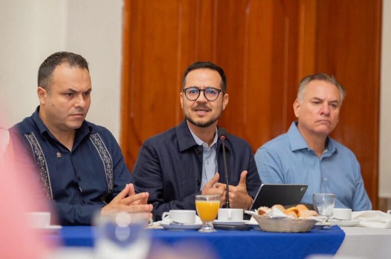 Durante esta reunión, la gobernadora Indira Vizcaíno estuvo acompañada por el secretario de Desarrollo Económico (Sedeco), Francisco Javier Rodríguez García, y por el subsecretario de Turismo (Subsectur), Jorge Padilla Castillo, quienes expusieron las metas alcanzadas, tanto en materia económica como turística, atendiendo las preguntas, planteamientos y peticiones de las y los integrantes de Coparmex Manzanillo.