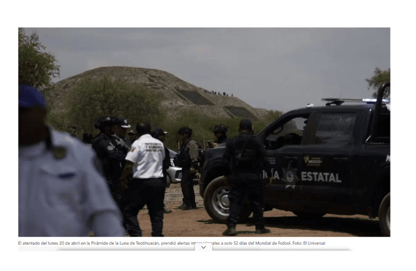 El atentado registrado en la zona arqueológica de Teotihuacán ha comenzado a tener repercusiones fuera del país, luego de que gobiernos extranjeros emitieran alertas o reforzaran recomendaciones de viaje para sus ciudadanos que planean visitar México.